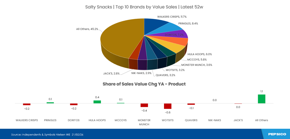 Top 20 of savoury snack products deliver over ¼ of the category’s value sales.